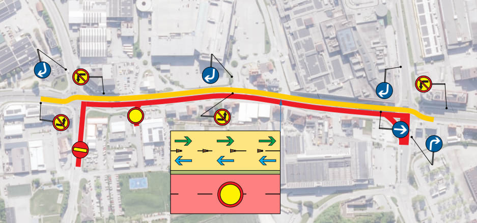 ,• izvoz iz Podjavorškove ulice, • uvoz na Cesto v Trnovlje iz smeri Vojnika